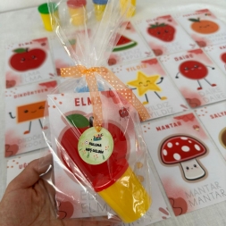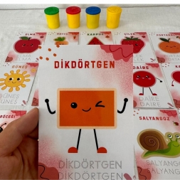Üründe, ev ve okul çalışma saatlerinde öğrencilerin oyun hamurlarını kullanarak mat üzerindeki şekillere uygun hamuru kullanması amaçlanmıştır.
